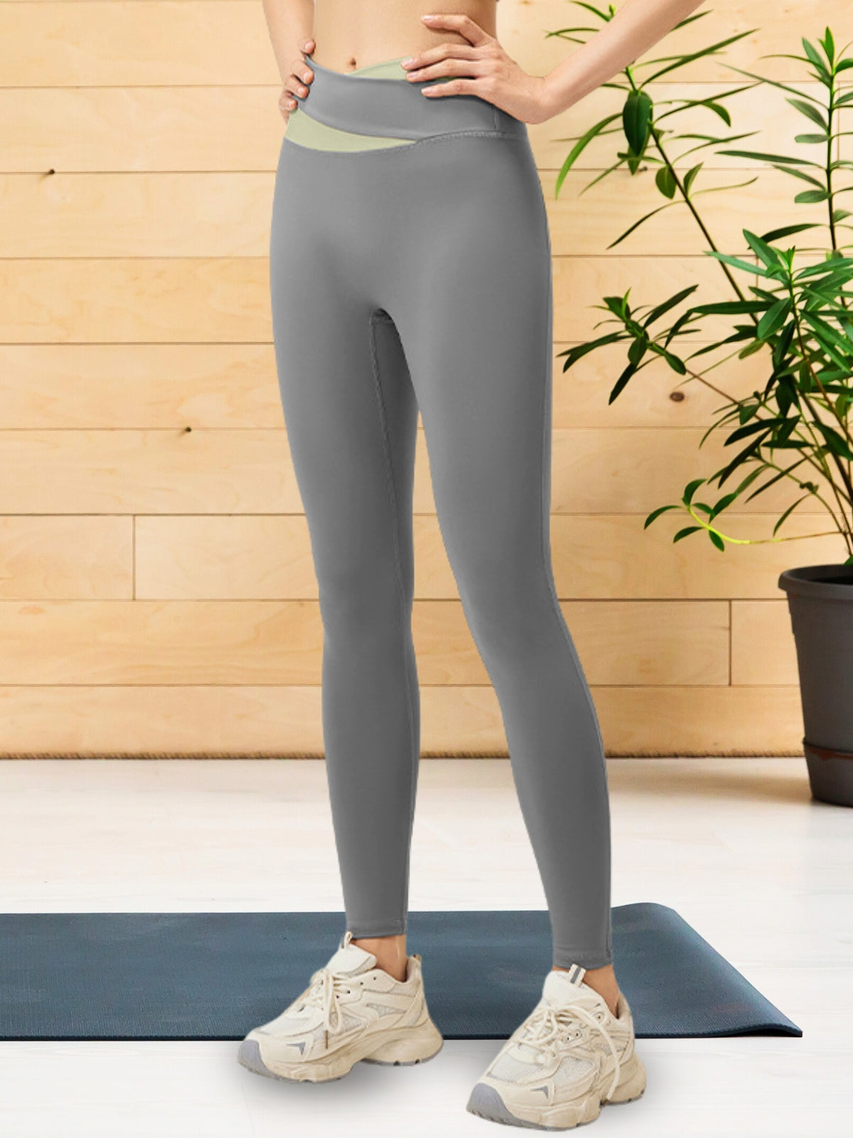 ウエストのバイカラーが おしゃれ な レギンス。 ロング丈 で脚を長くみせてくる ボトムス です。カラーが入りつつもシンプルなので、どんなトップスとも合わせやすいです。