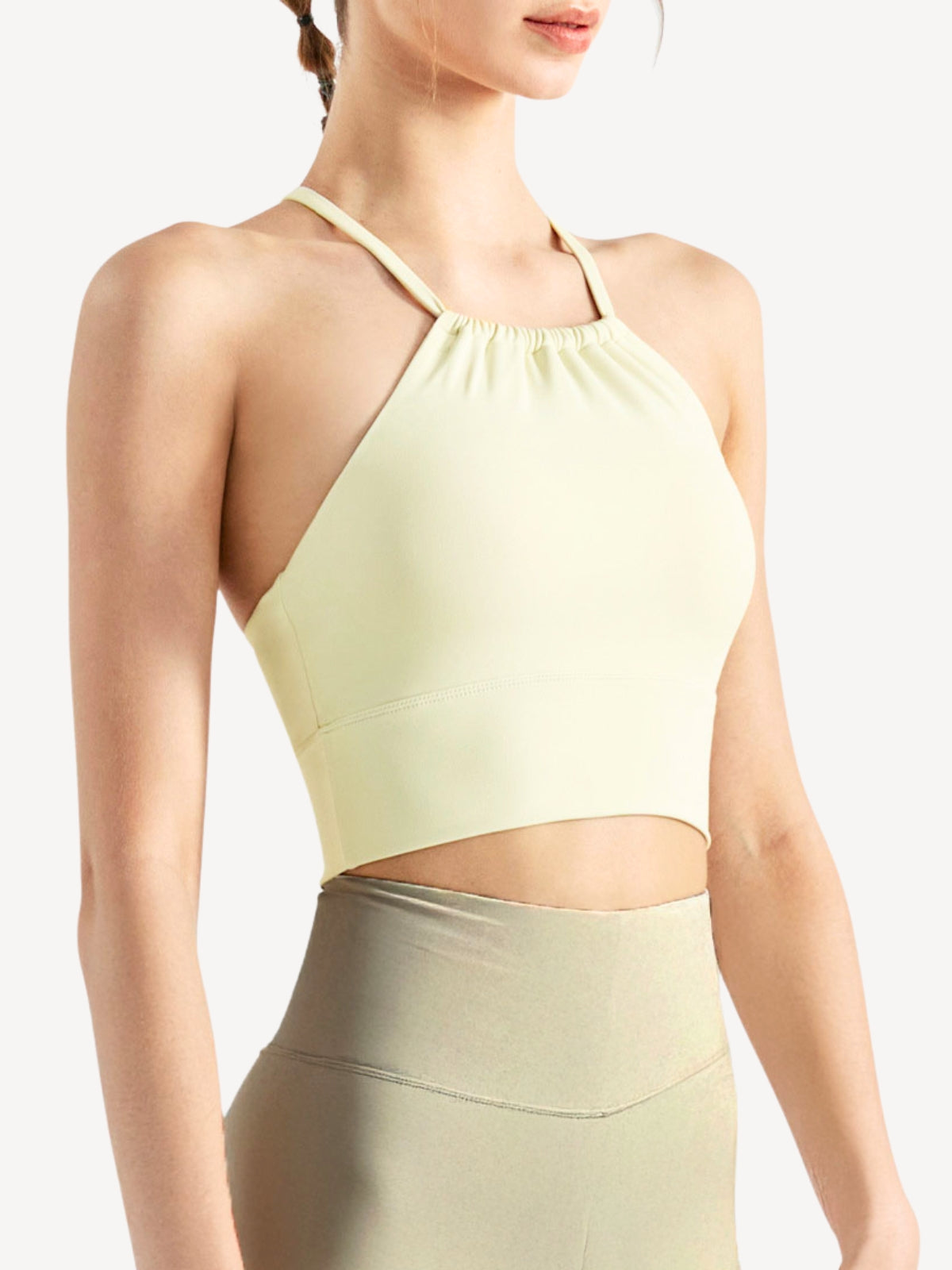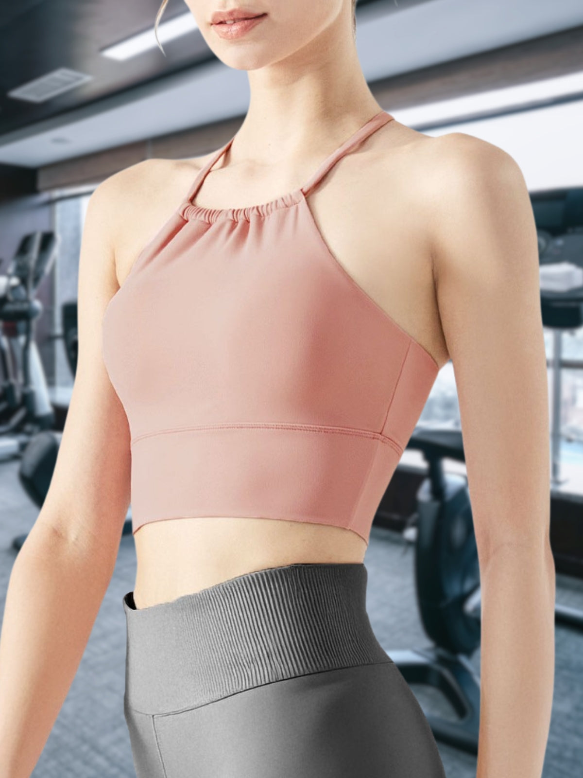 【2wayでつかえる】胸元の絞りを調整することで2パターンのシルエットが楽しめるスポーツブラ。シンプルなデザインで、どんなボトムスとも合わせやすいです。